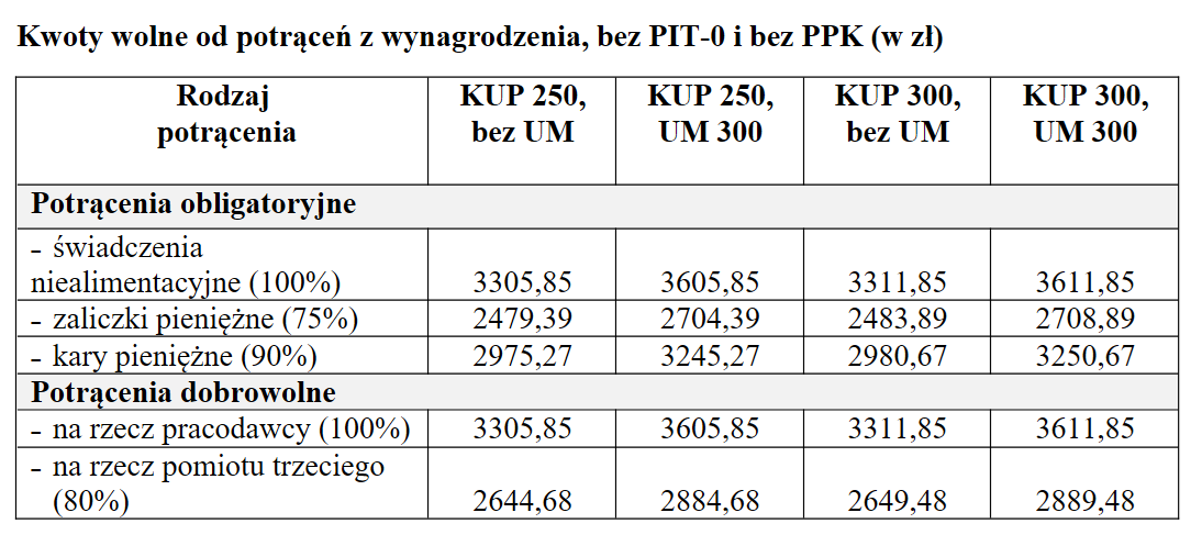 Kwoty wolne od obowiązkowych potrąceń z wynagrodzenia za pracę wynoszą: