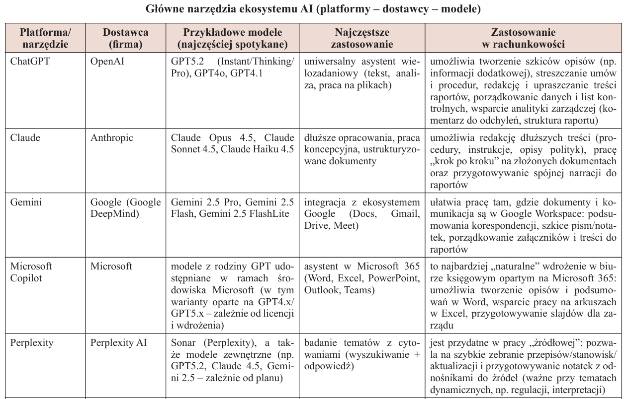 Ekosystem narzędzi AI z punktu widzenia rachunkowości