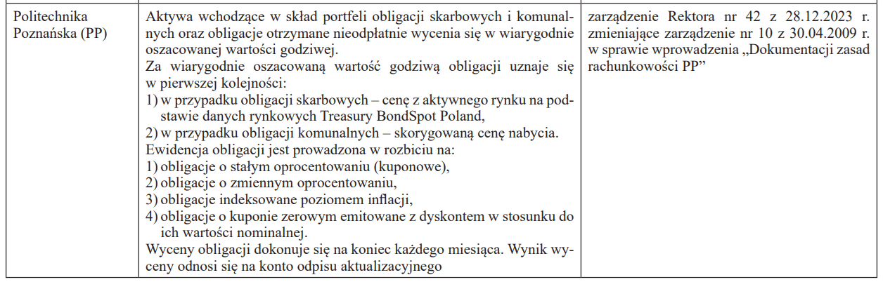 Zasady (polityka) rachunkowości w zakresie obligacji otrzymanych przez uczelnie publiczne